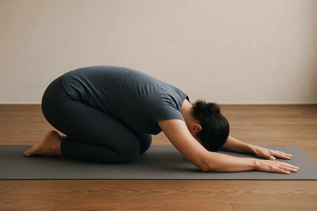 Child’s Pose is deeply calming and grounding. By gently stretching the back and opening the hips, it helps soothe the nervous system and relieve stress. This restful posture encourages introspection and slows down breath, making it a great starting or resting pose during any yoga practice.