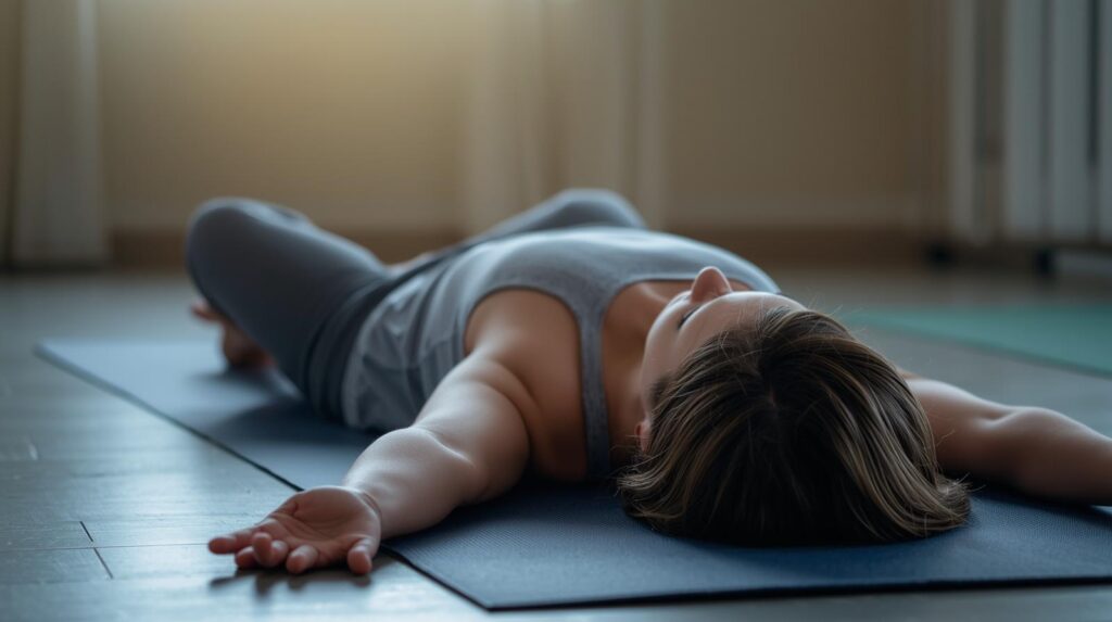 This restorative inversion encourages relaxation and improves circulation. Legs-Up-The-Wall Pose helps reduce anxiety, alleviates insomnia symptoms, and relieves fatigue, promoting deep mental calm.